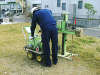 鋼管を継ぎ足しながら地盤の支持地盤まで圧入させ、その反力で家屋を持ち上げ、沈下を修復させる工法。